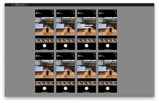 내 푸념을 본 개발자님이 빠르게 웹앱을 만들어 주셨다. 물론 타임스탬프의 디자인은 날것이었다. 점심으로 롯데리아를 제안하면 더 좋은 제안이 나오는 것처럼, 날것의 타임스탬프를 보자 빨리 디자인을 바꾸고 싶었다. 빠르게 시안을 만들어서 전달드렸다.